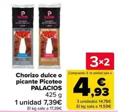 | Chorizo dulce o picante picoteo palacios | Carrefour | 15 abril 2023 | 25 abril 2023 | ||||
