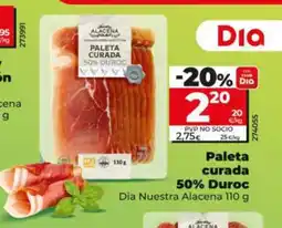 | Dia nuestra alacena - paleta curada 50% duroc | Dia | 2,79 € | 2,23 € | 0,56 € Descuento | 04 febrero 2026 | 10 febrero 2026 | |