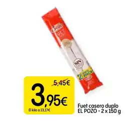 2Dialprix EL POZO Fuet casero duplo ofertaEL POZO Fuet casero duplo 2 x 150 gDialprix5,45 €3,95 €1,50 € Descuento19 febrero 202611 marzo 2026 Mirar oferta