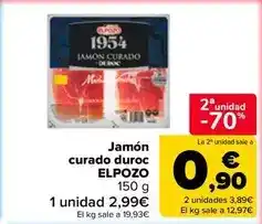 | ELPOZO Jamón curado Duroc XXL 1954 225 g | Carrefour Market | 2,32 € | -50% | 12 noviembre 2024 | 20 noviembre 2024 | ||