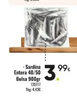 | Sardina Entera 40/50 Bolsa 900 g | Family Cash | 3,99 € | 09 febrero 2026 | 01 marzo 2026 | |||