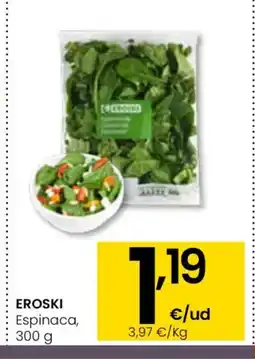1Aliprox EROSKI Espinaca ofertaEROSKI Espinaca 300 gAliprox1,19 €29 enero 202611 febrero 2026 Mirar oferta
