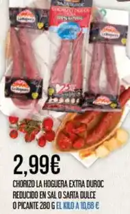 | Chorizo La Hoguera Extra Duroc Reducido En Sal Sarta Dulce O Picante 280 G | Claudio | 14 enero 2022 | 26 enero 2022 | ||||