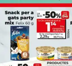 1Dia FELIX Snack per a gats party mix ofertaFELIX Snack per a gats party mix 60 gDia2,29 €1,14 €-50%28 enero 202603 febrero 2026 Mirar oferta