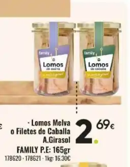 | FAMILY Lomos Melva o Filetes de Caballa A Girasol 165 g | Family Cash | 2,69 € | 09 febrero 2026 | 01 marzo 2026 | |||