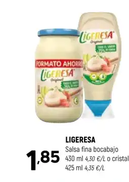 | LIGERESA Salsa fina bocabajo 430 ml | Coviran | 1,33 € | 05 marzo 2024 | 16 marzo 2024 | |||