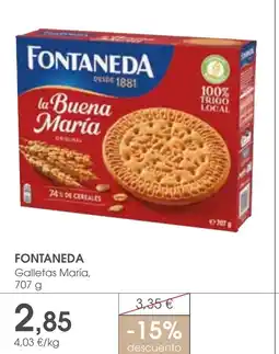 | FONTANEDA Galletas Maria 707 g | Supermercados Plaza | 3,35 € | 2,85 € | -15% descuento | 31 julio 2025 | 27 agosto 2025 | |