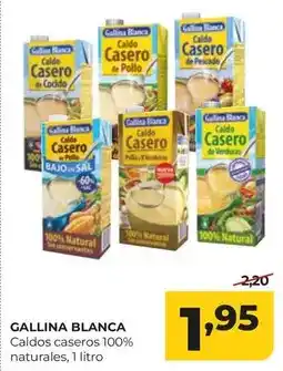 | GALLINA BLANCA Caldos caseros 100% naturales 1 L | Alimerka | 1,47 € | 11 septiembre 2025 | 01 octubre 2025 | |||