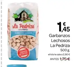 | 1 | LA PEDRIZA Garbanzos Lechosos 500 g | Supermercados El Jamón | 1,75 € | 1,45 € | 0,30 € Descuento | 26 febrero 2026 | 25 marzo 2026 | Mirar oferta | |