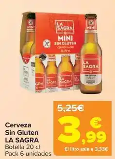 | 2 | La sagra - cerveza sin gluten | Carrefour | 5,25 € | 3,99 € | 1,26 € Descuento | 07 abril 2026 | 22 abril 2026 | Mirar oferta | |