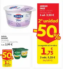 1Alcampo FAGE Griego ofertaFAGE Griego 450 gAlcampo3,50 €1,75 €1,75 € Descuento26 febrero 202611 marzo 2026 Mirar oferta