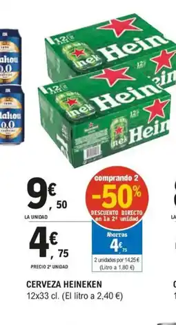 2E.Leclerc HEINEKEN Cerveza ofertaHEINEKEN Cerveza 12 x 33 clE.Leclerc9,50 €4,75 €4,75 € Descuento14 abril 202625 abril 2026 Mirar oferta