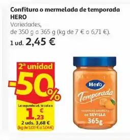 2Alcampo HERO Confitura o mermelada de temporada ofertaHERO Confitura o mermelada de temporadaAlcampo2,45 €1,23 €1,22 € Descuento26 febrero 202611 marzo 2026 Mirar oferta