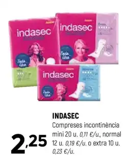 Actualmente hay varias promociones activas para Indasec, disponibles en Costco y otras grandes cadenas. Se incluyen acciones como 1+1 gratis, 25 % de descuento o precios promocionales en productos como INDASEC DISCREET Compresas extra, INDASEC Compreses incontinència mini normal y Indasec - compreses incontinència mini 20 u. Con los filtros puedes seleccionar fácilmente por formato, contenido o marca preferida.