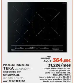 | 2 | TEKA Placa de inducción | El Corte Inglés | 364,65 € | 07 enero 2026 | 21 enero 2026 | Mirar oferta | |||