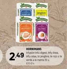 HORNIMANS Infusión Infu-digest, Infu-línea, Infu-relax, té jengibre, te rojo o te verde a la menta