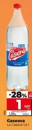 Dia LA CASERA Gasosa ofertaLA CASERA Gasosa 1.5 lDia1,29 €1,00 €-22%08 abril 202614 abril 2026