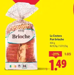 1Lidl LA CESTERA Pan brioche ofertaLA CESTERA Pan brioche 450 gLidl1,89 €1,49 €-21%12 enero 202618 enero 2026 Mirar oferta