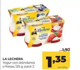 | La Lechera Yogur con fresas 125 g.pack 2 | Alimerka | 1,59 € | 0,80 € | 0,79 € Descuento | 23 febrero 2023 | 08 marzo 2023 | |