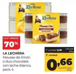 | LA LECHERA Mousse duo chocolate con leche-blanco o de limón 118 g | Alimerka | 2,19 € | 0,66 € | 1,53 € Descuento | 23 febrero 2026 | 01 marzo 2026 | |