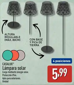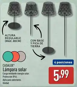 | Casalux - lampara solar con pincho | ALDI | 3,99 € | 16 junio 2025 | 22 junio 2025 | |||