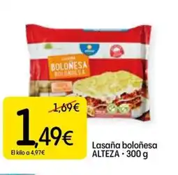 | 1 | ALTEZA Lasaña boloñesa 300 g | Dialprix | 1,69 € | 1,49 € | 0,20 € Descuento | 08 enero 2026 | 28 enero 2026 | Mirar oferta | |