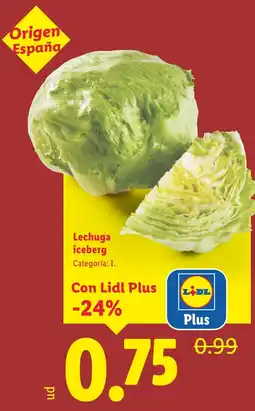 | Lechuga Iceberg | Lidl | 0,99 € | 0,75 € | 0,24 € Descuento | 26 diciembre 2023 | 31 diciembre 2023 | |