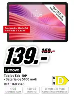 MediaMarkt LENOVO Tablet Idea Tab 11P ofertaLENOVO Tablet Idea Tab 11PMediaMarkt239,00 €209,00 €30,00 € Descuento02 febrero 202608 febrero 2026
