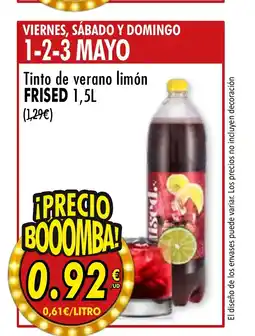 Spar Express FRISED 1, Tinto de verano limón ofertaFRISED 1, Tinto de verano limón 1.5 lSpar Express1,29 €0,92 €0,37 € Descuento17 abril 202603 mayo 2026