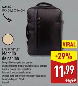 ALDI LIVE IN STYLEⓇ Mochila de cabina ofertaLIVE IN STYLEⓇ Mochila de cabinaALDI14,99 €20 marzo 202426 marzo 2024