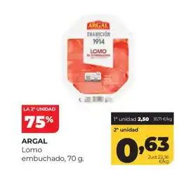 | 2 | ARGAL Lomo embuchado 70 g | Alimerka | 2,50 € | 0,63 € | 1,87 € Descuento | 23 abril 2026 | 20 mayo 2026 | Mirar oferta | |