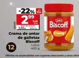 Dia LOTUS BISCOFF Crema de untar de galletas ofertaLOTUS BISCOFF Crema de untar de galletas 400 gDia3,85 €2,99 €-22%31 diciembre 202506 enero 2026