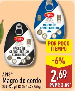 2ALDI APIS Magro de cerdo ofertaAPIS Magro de cerdo 200-220 gALDI2,89 €2,69 €-6%16 febrero 202622 febrero 2026 Mirar oferta