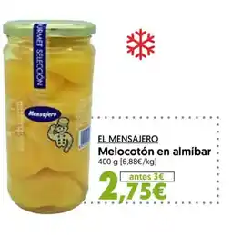 | EL MENSAJERO Melocotón en almíbar 400 g | Hiper Usera | 2,75 € | 17 diciembre 2025 | 01 enero 2026 | |||