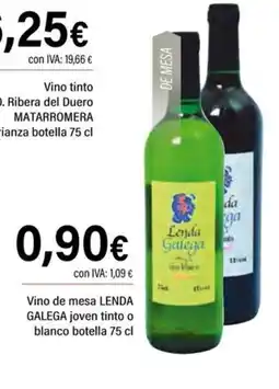 | LENDA GALEGA Vino de mesa joven blanco o tinto botella 75 cl | Cash Ifa | 0,90 € | 17 septiembre 2025 | 23 septiembre 2025 | |||