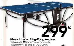 Hiper FROIZ Mesa Interior Ping-Pong Andina ofertaMesa Interior Ping-Pong AndinaHiper FROIZ299,00 €23 abril 202625 mayo 2026