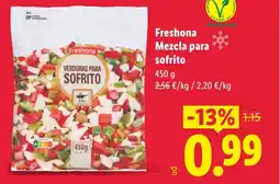 | 2 | FRESHONA Mezcla para sofrito 450 g | Lidl | 1,15 € | 0,99 € | -13% | 20 abril 2026 | 26 abril 2026 | Mirar oferta | |