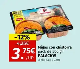 Supermercados El Jamón PALACIOS Migas con Chistorra ofertaPALACIOS Migas con Chistorra 250 gSupermercados El Jamón3,95 €23 octubre 202512 noviembre 2025