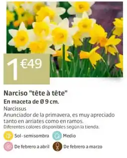 Jardiland Narciso "tête à tête" ofertaNarciso "tête à tête"Jardiland1,49 €05 febrero 202616 febrero 2026