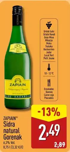 | ZAPIAIN Sidra natural Gorenak 0.75 L | ALDI | 2,89 € | 2,49 € | -13% | 11 marzo 2026 | 15 marzo 2026 | |