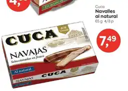 | Cuca Navalles al natural 65 g | Suma Supermercados | 7,49 € | 22 abril 2026 | 05 mayo 2026 | |||