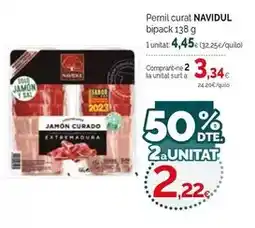 Dia NAVIDUL Pernil curat/ reduït en sal en llenques ofertaNAVIDUL Pernil curat/ reduït en sal en llenques 45 gDia1,00 €0,50 €-50%25 marzo 202631 marzo 2026