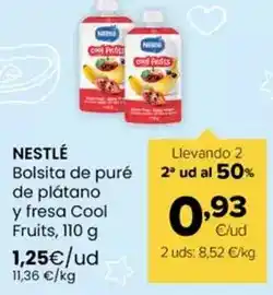 Autoservicios Familia Nestlé - bolsita de pure de platano y fresa cool fruits oferta