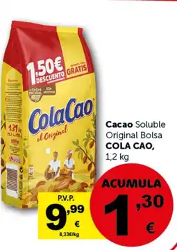 | COLA CAO Cacao Soluble Original Bolsa 1.2 kg | Masymas | 9,99 € | 27 marzo 2026 | 27 abril 2026 | |||