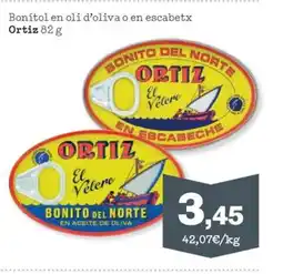 Hiper Usera ORTIZ Bonito del norte ofertaORTIZ Bonito del norte 82 gHiper Usera3,35 €3,00 €0,35 € Descuento25 febrero 202614 marzo 2026