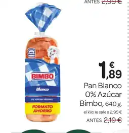 | BIMBO Pan Blanco 0% Azúcar 640 g | Supermercados El Jamón | 2,19 € | 1,89 € | 0,30 € Descuento | 08 enero 2026 | 28 enero 2026 | |