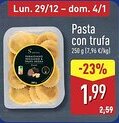 1ALDI Pasta con trufa ofertaPasta con trufa 250 gALDI2,59 €1,99 €-23%29 diciembre 202504 enero 2026 Mirar oferta