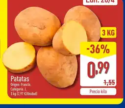 3ALDI Patatas ofertaPatatas 3 kgALDI1,55 €0,99 €-36%20 abril 202626 abril 2026 Mirar oferta