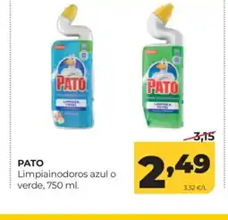 2Alimerka PATO Limpiainodoros azul o verde ofertaPATO Limpiainodoros azul o verde 750 mlAlimerka3,15 €2,49 €0,66 € Descuento26 marzo 202622 abril 2026 Mirar oferta