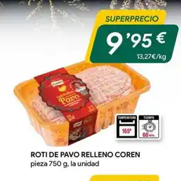 | COREN Roti de pavo relleno 750 g | Masymas | 9,95 € | SUPERPRECIO | 19 diciembre 2025 | 31 diciembre 2025 | ||